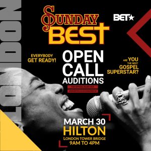 For the first time ever, BET are holding open auditions in the UK for one of the biggest gospel singing competitions on TV, Sunday Best, and giving two winners the chance to fly to Atlanta to take part in the US show.