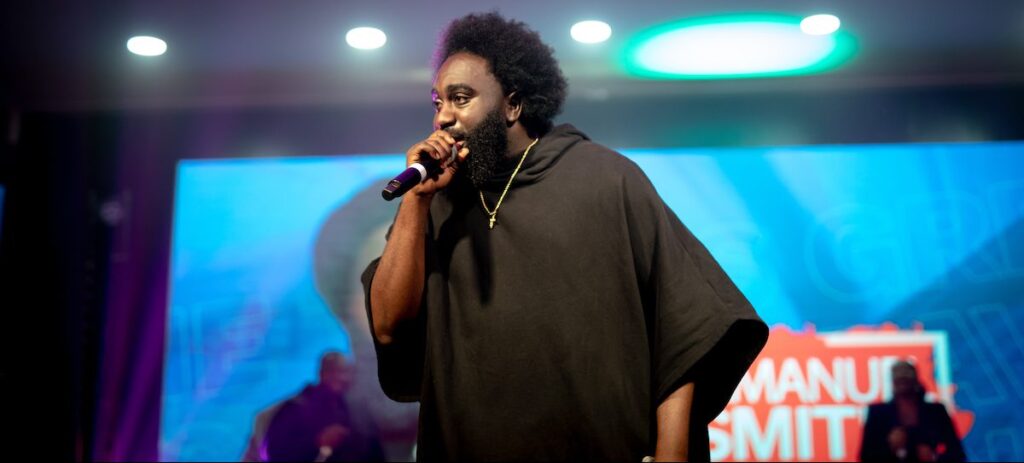 The Voice live semifinalist, Emmanuel Smith next gave us much to listen to and sing about in his performance on the night. Emmanuel is an individual whose gift has made plenty of room for him in the secular space and this was very apparent here as he gave us an energetic mix of songs demonstrating his impeccable artistic range. His popular single ‘Asore Ye De’ had already been referenced by audience members in the pre-show so rowdy reaction came as no surprise once it was played. The packed Freedom arena  (church auditorium) vibed ecstatically as the minstrel performed the hit which aptly means “Church is awesome” in Twi.