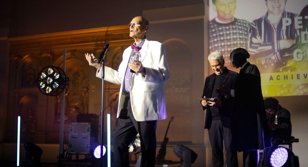 Read more about his pioneering work HERE | Peter pictured below at StepFWD Awards with Les Moir (Author & A&R) and Paulette Long OBE (Chair – Music Publishers Association) who presented him with the awards on the night.