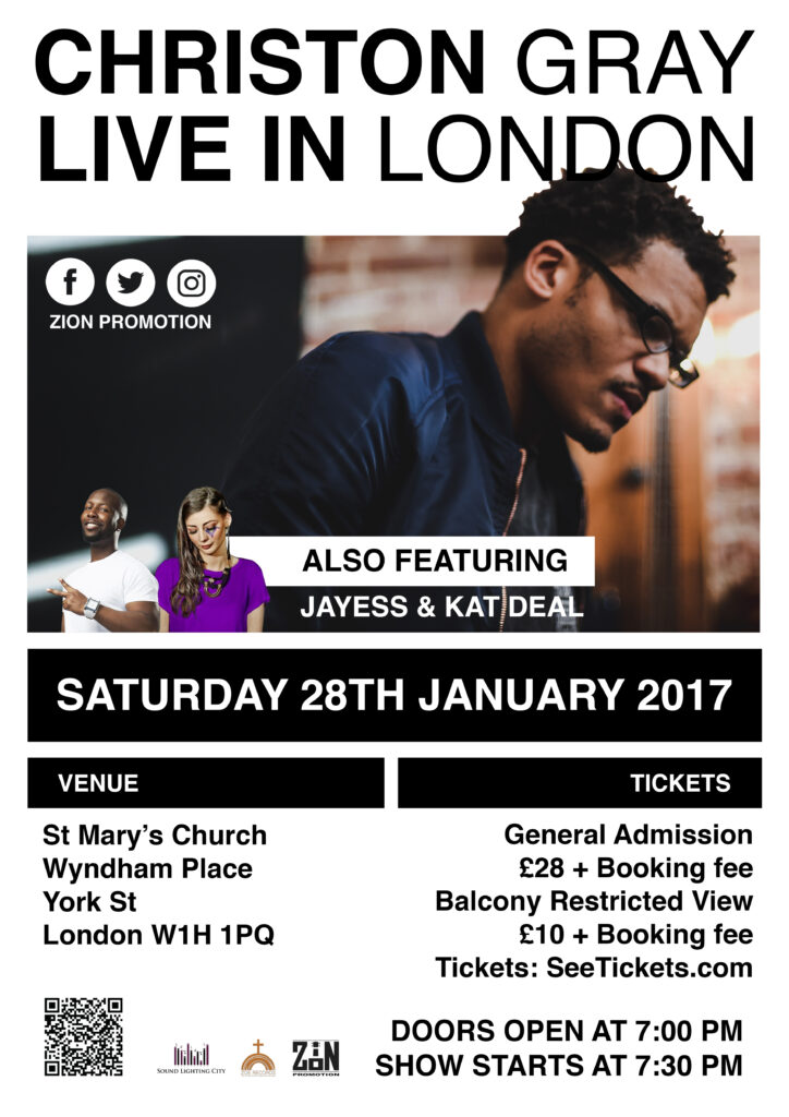 Zion Promotion is so proud to host Christon Gray Live In London. Christon Gray is a Christian rapper, singer and